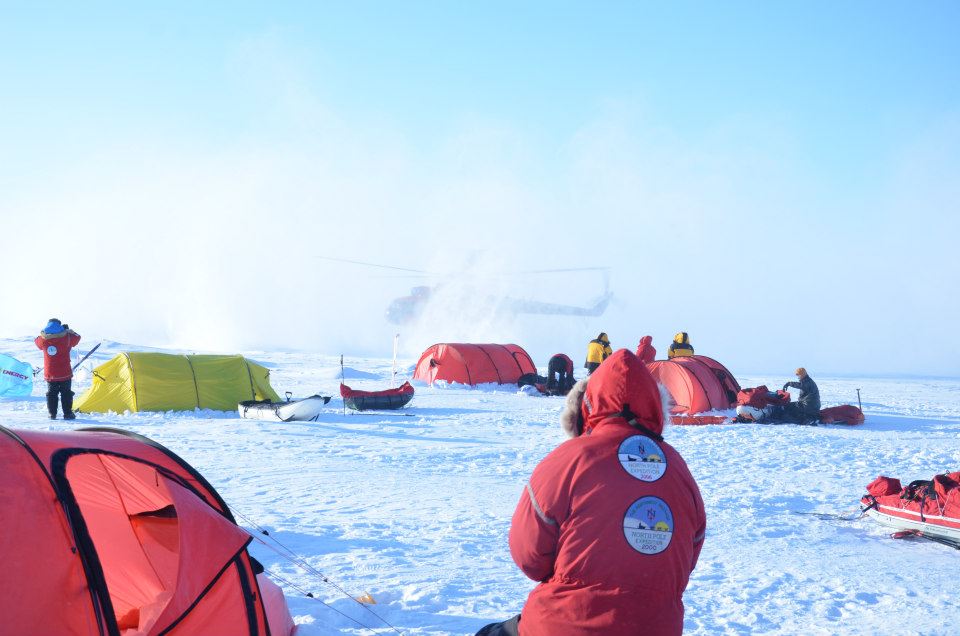 Even once we were all in our tents it was still so cold that some people ended up getting into their sleeping bags. Finally, this and a hot dinner did the trick and some life came back to the camp and we went outside to celebrate when the Chinese team arrived - a crate with some wine and vodka had been dropped nearby by a helicopter from Barneo!